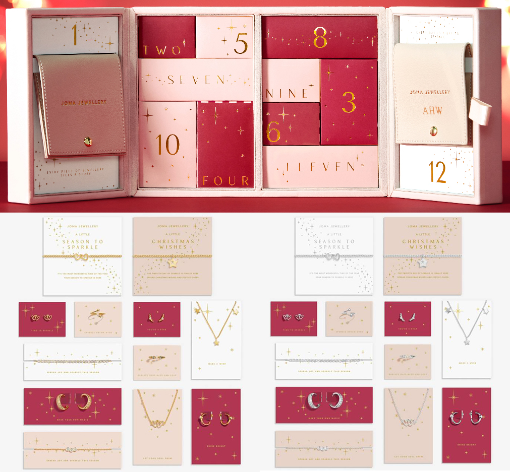 Joma Jewellery 12 Days Of Sparkle Advent Calendar 2025 Gold/Silver (worth up to £300). Priced at £179.99/£169.99. Includes a selection of gold- and silver-plated bracelets, necklaces, and earrings.