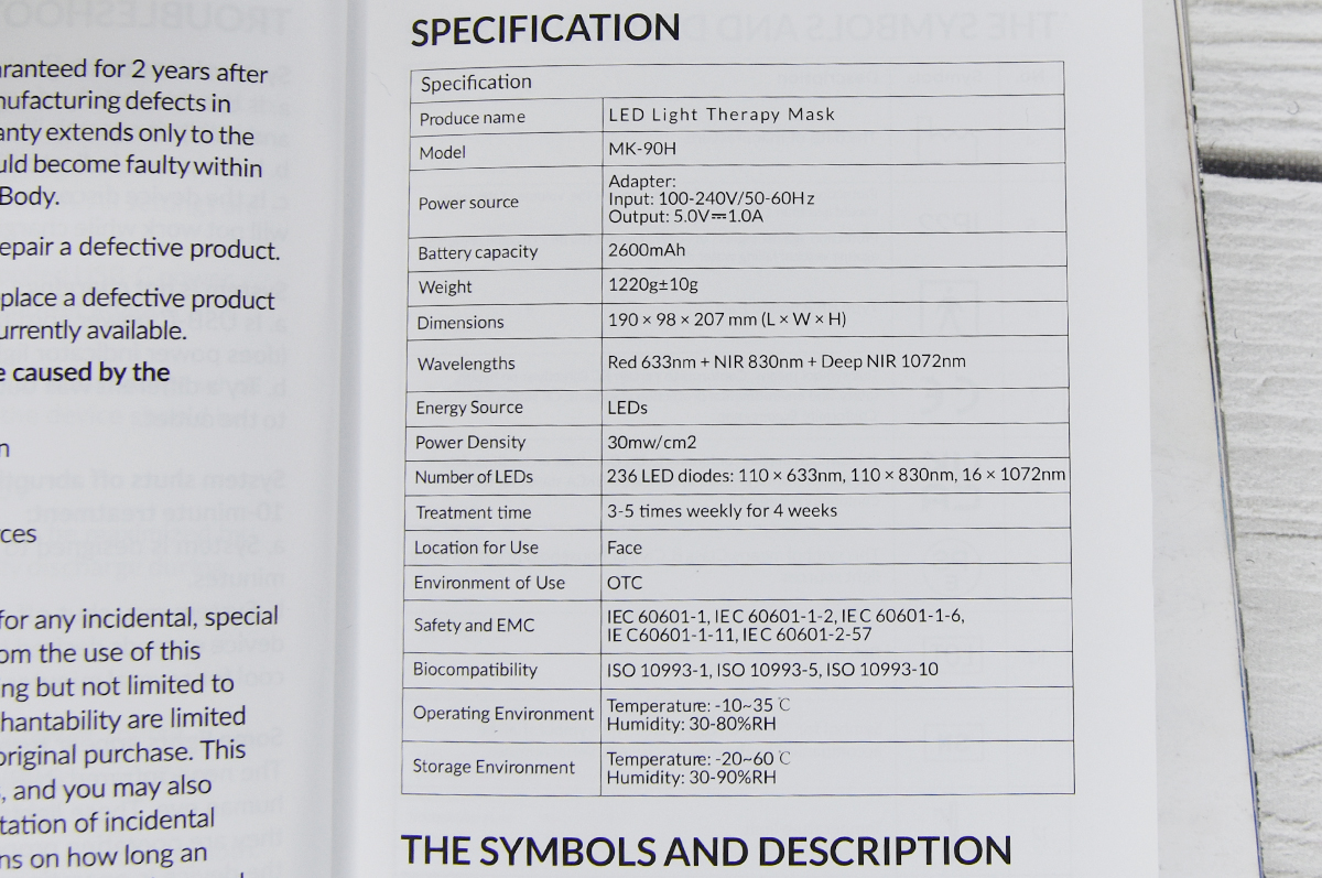 - 110 near-infrared LEDs (830 nm) – a clinically proven wavelength that targets deeper layers of the skin, improving firmness and elasticity. The combination of red and near-infrared light in LED therapy can enhance anti-ageing and skin rejuvenation effects.