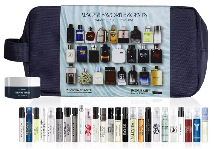 Macy’s 26-Pc. For Him Fragrance Sampler Set. Priced at $46.00.