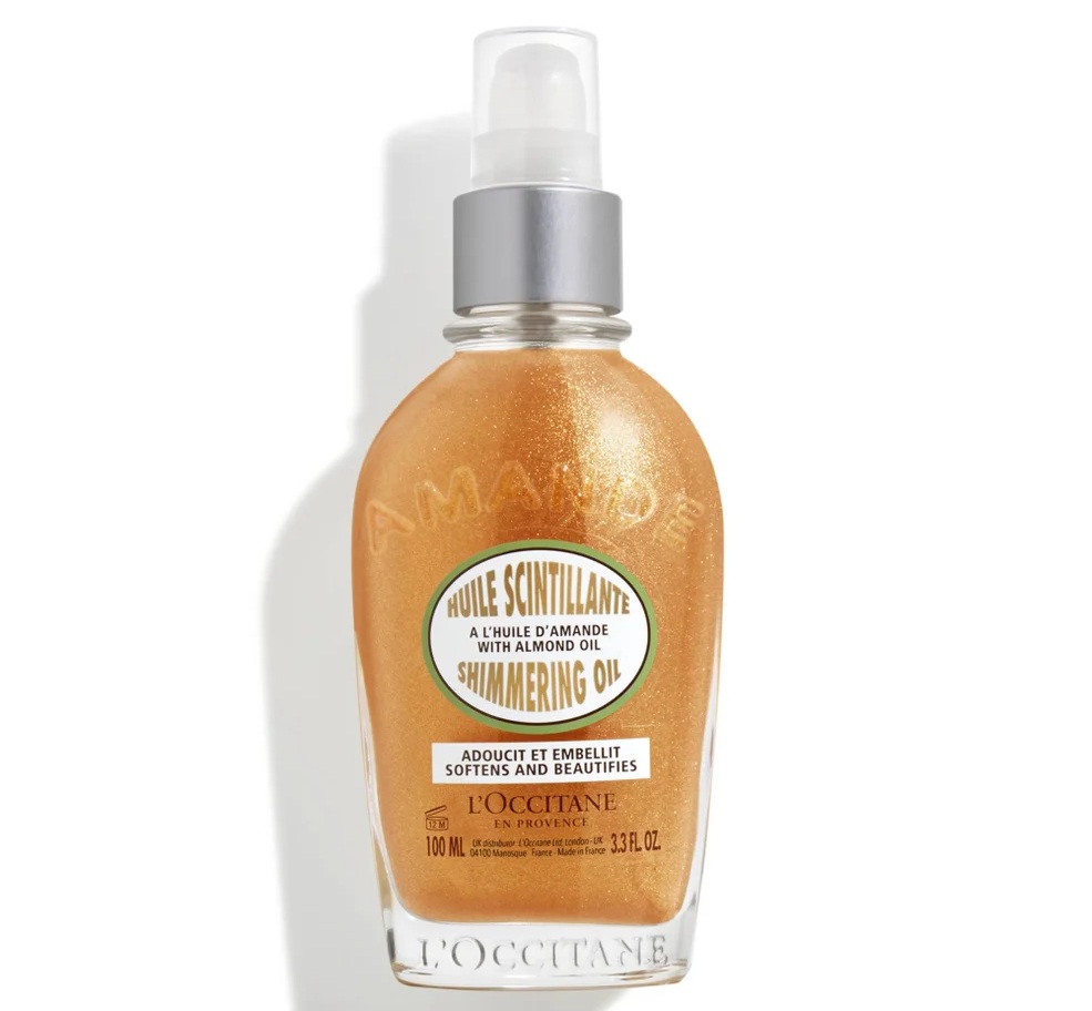 L’Occitane Almond Shimmering Body Oil (£40.00) – a rich, nourishing oil for a radiant glow. This spa-level oil delivers a veil of luminous shimmer to your limbs. The fast-absorbing formula features sweet almond oil from Provence to soften and comfort, alongside fatty-acid-rich omegas to protect and intensely moisturise. This indulgent treat transforms your body care routine into a pampering ritual, soothing the senses with the gourmand aroma of fresh, candied almonds. Say hello to silky, shimmering skin and the sweet scent of luxury.