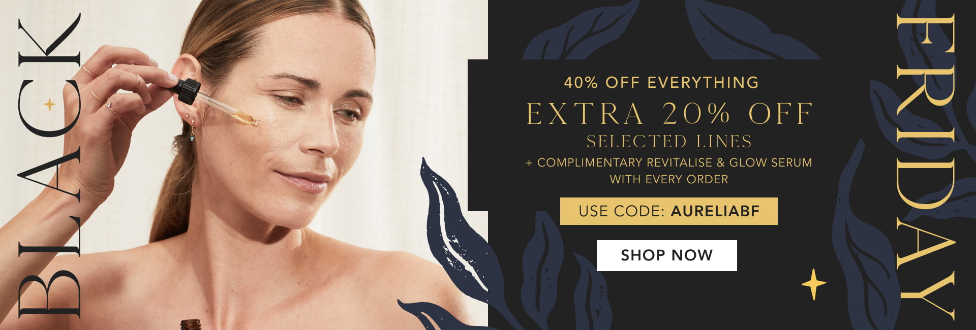 Black Friday at Aurelia: 40% off sitewide + complimentary revitalise & glow serum 15ml + an extra 20% off with code AURELIABF.