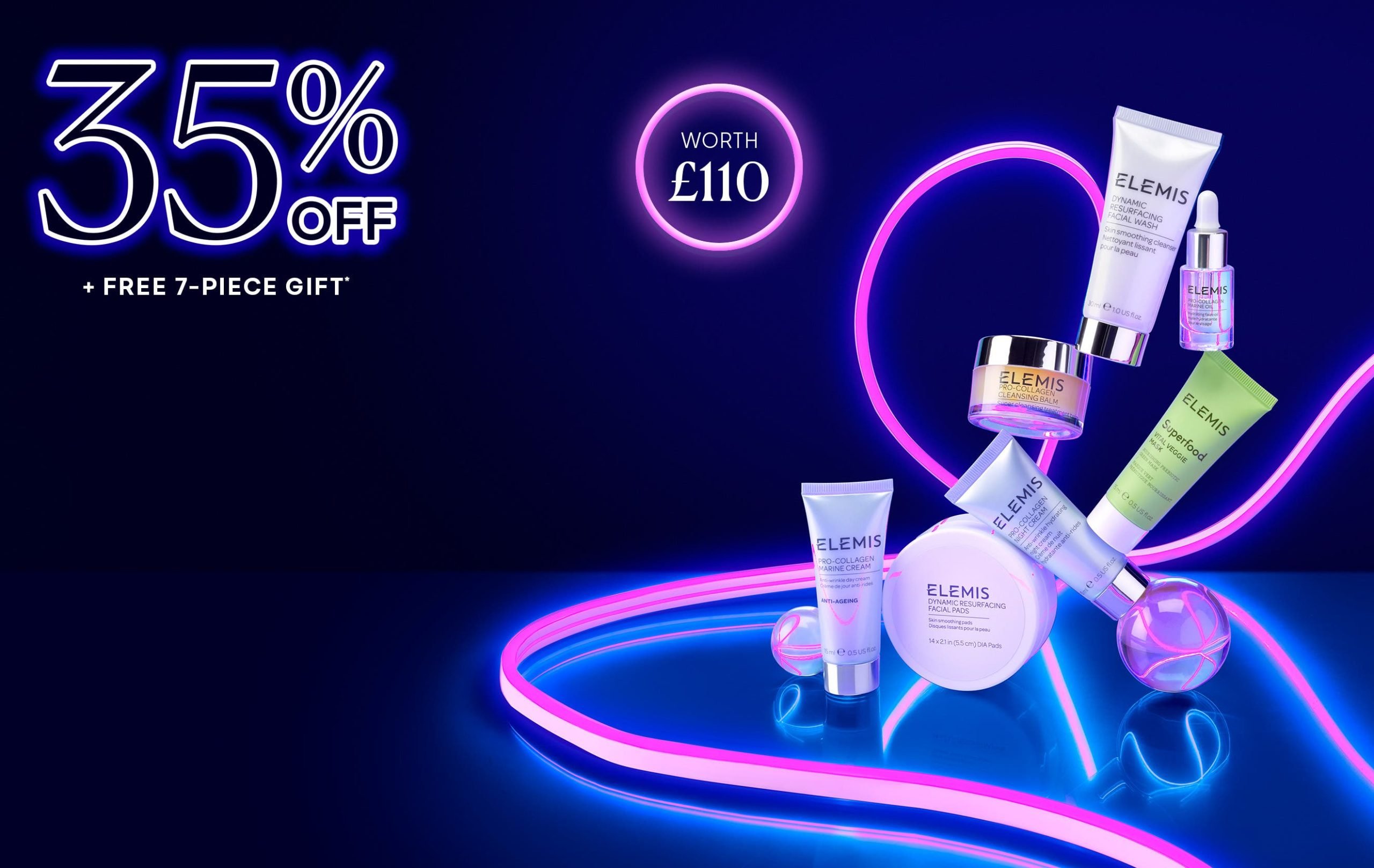 Get a free Elemis 7-Piece Cyber Gift 2022 when you spend £110 + 35% off sitewide with code CYBERGLOW.